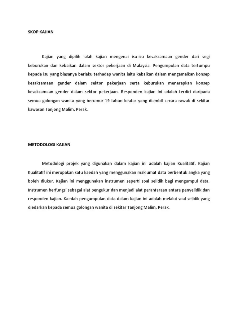 Text of metodologi kajian pengajian am penggal 2 (kerja kursus). Kerja kursus pengajian perniagaan contoh kerja kursus pengajian. Skop kajian ini perlu dibuat untuk mengelak daripada permasalahan yang dikaji tersasar. Terdapat tiga aspek yang perlu dijelaskan dalam bahagian skop kajian. Format penulisan kerja kursus menjelaskan skop kajian yang perlu .